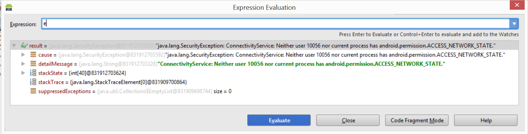 Now if we run the application as is, we get the following exception when we try to get the state of network.